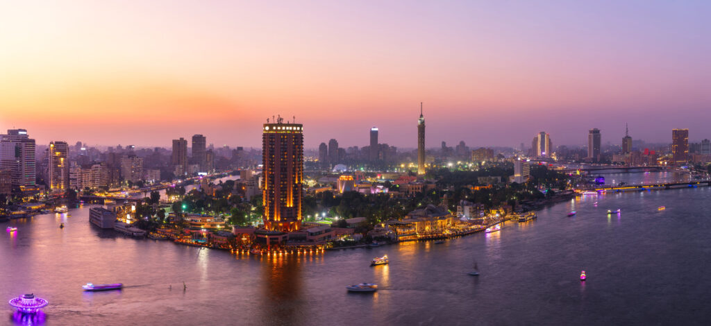 The night lights of Cairo, aerial panorama, Egypt; Shutterstock ID 2417501027; purchase_order: 05082024; job: New SCB office in Cairo; client: The StroryLab, Standard Chartered; other: