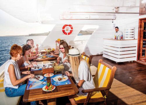 - Banquet-style meals prepared onboard with fresh, high-quality ingredients