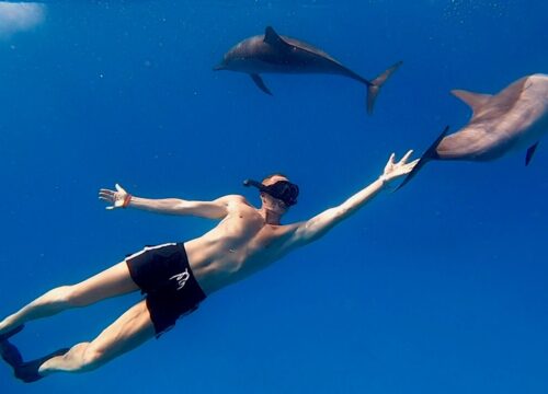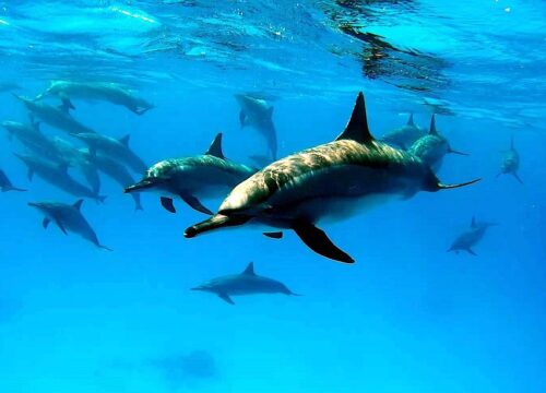 Enjoy an unforgettable day on the Red Sea, surrounded by stunning coral reefs, colorful fish, and the magical experience of encountering dolphins in the wild.
