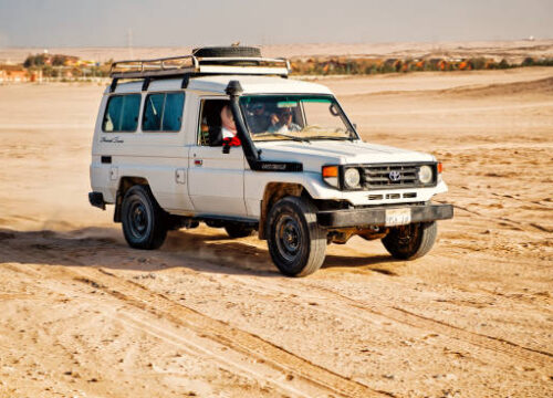Board a 4×4 Jeep for a scenic 20-kilometer desert journey across wide plains, mountain trails, and panoramic desert landscapes. This ride highlights the natural beauty and vastness of the Eastern Desert.